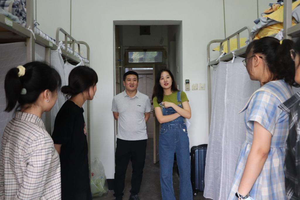 9月4日下午,外國語學院副院長(主持工作)呂旭英同2021級研究生輔導員夏蕾,走訪了研究生新生寢室。外國語學院黨委副書記孫德剛和2021級本科生輔導員王晶,看望了本科新生。老師們向新生們詢問了新生們的基本情況,對新同學們有了大致的了解。老師們希望寢室同學們能夠互幫互助,省內(nèi)同學幫助省外同學盡快適應成都的生活習慣,大家一起積極迎接下來的學習和生活。最后祝愿新生們擁有美好的宿舍生活。