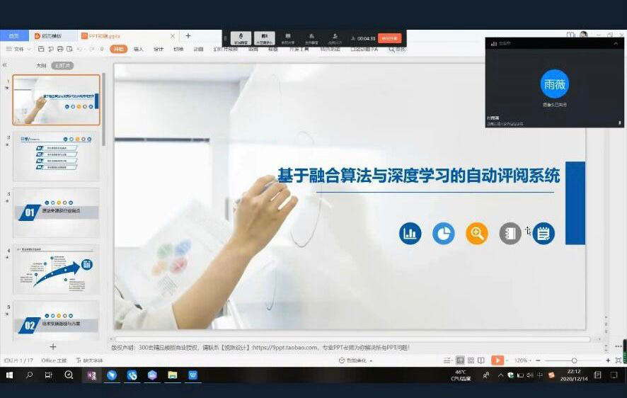 張楊同學首先介紹了自己的“互聯網+”項目——基于融合算法與深度學習的自動評閱系統,著重講解了該產品的創新點,由此衍生到“互聯網+”大賽的切入點及注意事宜。張楊同學還具體介紹了全國大學生電子商務“創新、創意及創業”挑戰賽、中國大學生服務外包創新創業大賽等創新創業類競賽,號召同學們積極參與其中。最后在問答環節中,張楊同學就團隊建設問題做出解答,他提到,我們外語院同學也可以與其他學院的同學進行合作,共同打造一個十分優秀的創新創業團隊。