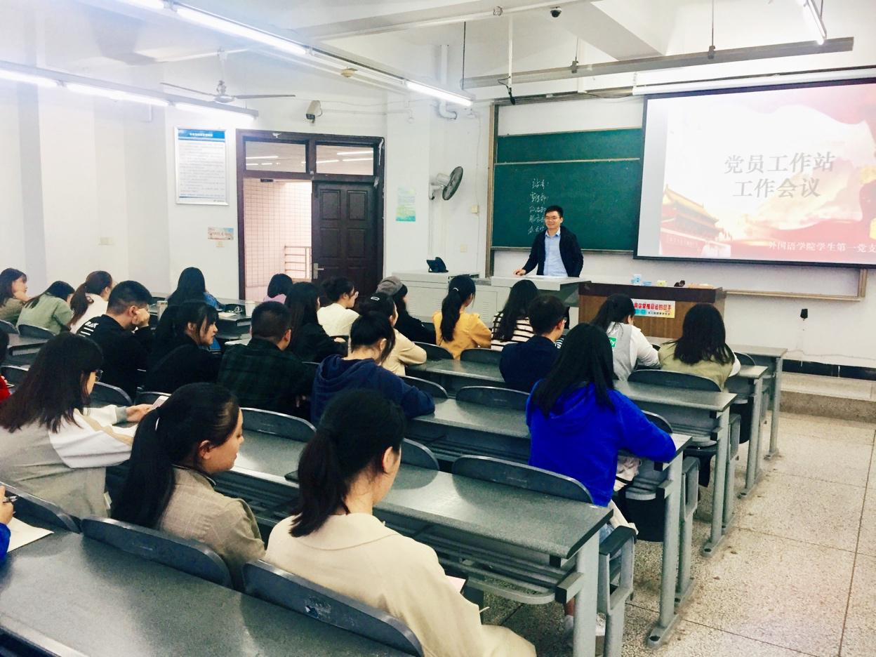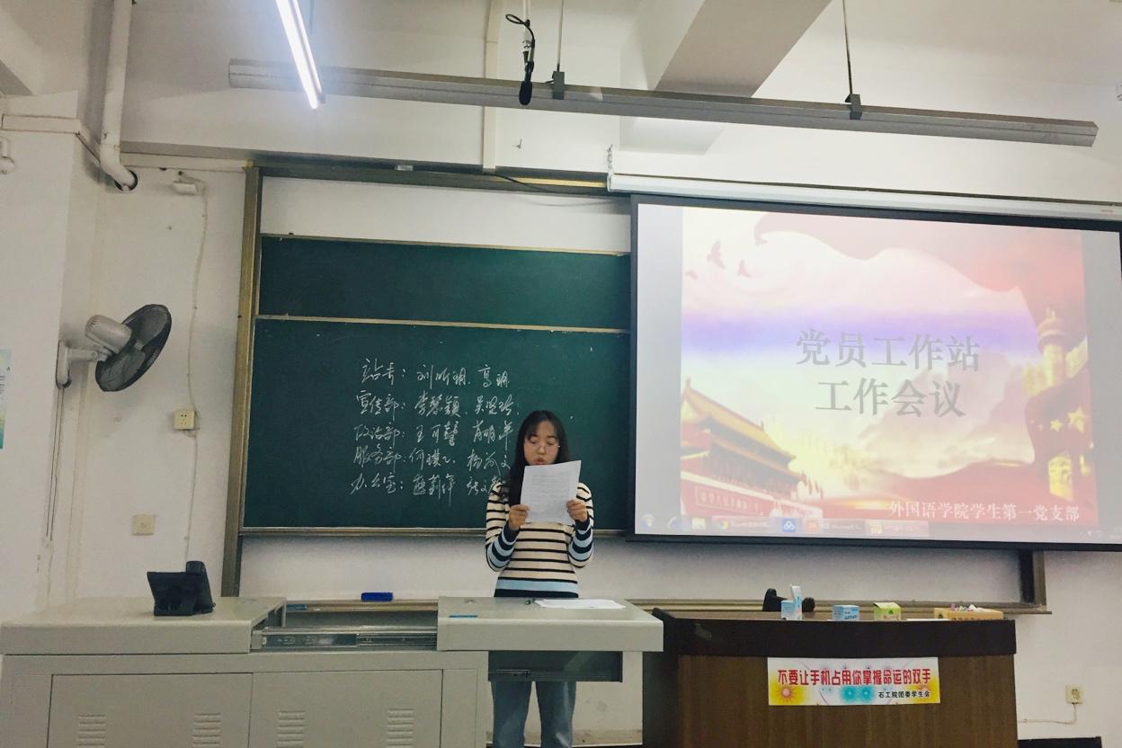 為了推進新學期學生公寓黨員工作站的工作,外國語學院學生第一黨支部于10月8日下午17:20在思學樓A416開展學生公寓黨員工作站工作會議。本次會議由支部書記羅文雙老師主持。