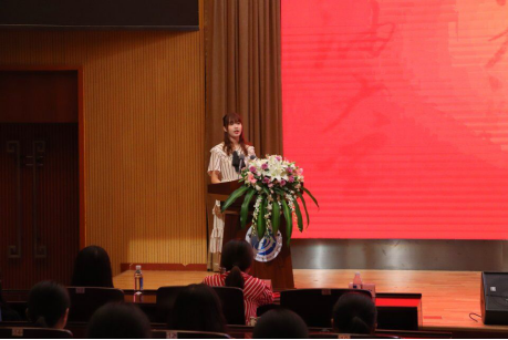 副院長(主持工作)呂旭英全程使用英文表達了對2019級新生的美好祝愿,她囑咐同學們語言學習沒有捷徑,必須踏踏實實練習“聽”“說”“讀”“寫”“譯”五種能力,樹立明確的學習目標,從一點一滴做起。胥瑾老師鼓勵新生要滿懷熱情,堅定信念,學好專業知識,以飽滿的姿態迎接大學生活。外籍教師Dean Horton以幽默風趣的口吻熱烈歡迎新同學的到來,他通過一系列英文大賽、校園的美麗風景以及便捷的交通激發起了同學們對大學生活的興趣。會上,2019級研究生代表朱珠和本科生代表徐曉然分別進行發言,談到大學與中學生活的種種不同,并對即將迎來的大學生活滿懷期待。