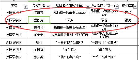 外語(yǔ)學(xué)院結(jié)合外語(yǔ)特色,在創(chuàng)新創(chuàng)業(yè)項(xiàng)目選擇、培育打造過(guò)程中,突出語(yǔ)言服務(wù)功能,逐漸形成了一批與語(yǔ)言特色有關(guān)的創(chuàng)新創(chuàng)業(yè)項(xiàng)目。其中國(guó)家級(jí)大學(xué)生創(chuàng)新創(chuàng)業(yè)訓(xùn)練項(xiàng)目1項(xiàng);校級(jí)“互聯(lián)網(wǎng)+”項(xiàng)目40余項(xiàng),其中獲得銀獎(jiǎng)和銅獎(jiǎng)各一項(xiàng)。