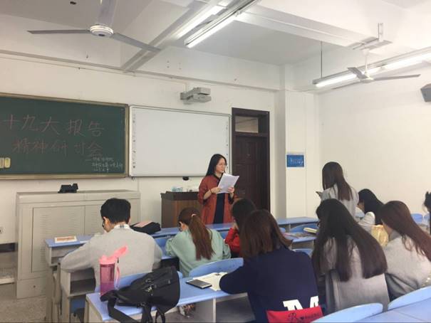 為了緊跟黨的腳步,學習貫徹黨的方針政策,我支部于2017年11月9日在思學樓C401組織了一次以黨的十九大為主題的研討會,學習黨的十九大精神和《中國共產黨章程(修正案)》。會上大家各抒己見,發表了學習黨的十九大報告的體會。