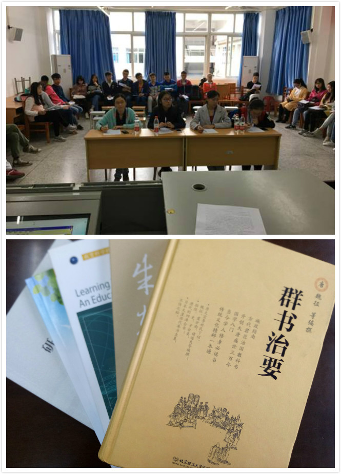 2017年10月12日下午,外國(guó)語(yǔ)學(xué)院院團(tuán)委組織同學(xué)開展了《群書治要》讀書分享會(huì),使學(xué)生深入學(xué)習(xí)中國(guó)古代思想文化精髓,并以繼承和弘揚(yáng)中華優(yōu)秀傳統(tǒng)文化為己任。列出推薦閱讀書目,征集、購(gòu)置部分圖書,在學(xué)生工作辦公室設(shè)立“讀書角”。