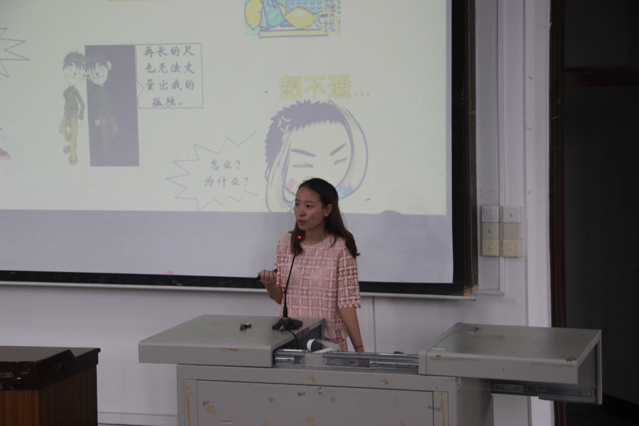 為了更好的引導2017級新生適應大學生活,同時也為了解新生目前的心理狀況。9月12日下午,外國語學院在思學樓B210開展了新生心理健康教育講座,2017級輔導員羅文雙老師以及2017級全體新生參加了此次教育講座。我院特邀了大學生心理發展中心的張笑菲老師出席此次講座,并擔任主講人。