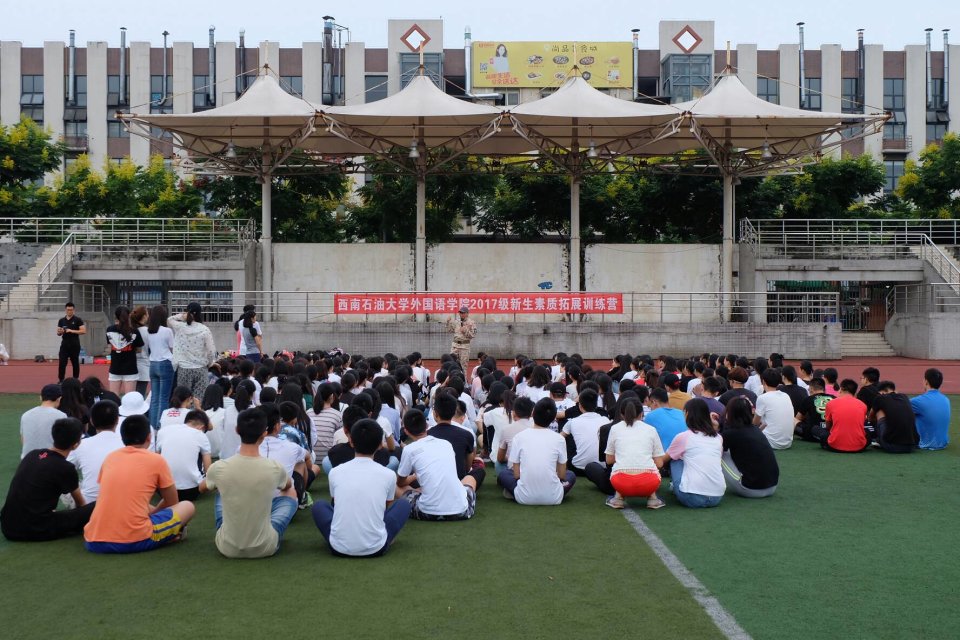 9月10日上午8點,外國語學院組織開展了2017級新生質拓展訓練。全院240余名本科及研究生新生到場參與訓練。學院黨委副書記孫德剛、輔導員羅文雙老師及學生會干部到場指導或陪同訓練。