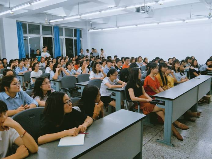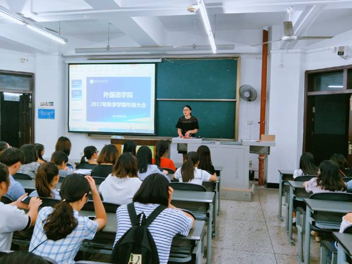 2017年9月3日,外國(guó)語(yǔ)學(xué)院輔導(dǎo)員夏蕾老師在思學(xué)樓A311召開(kāi)本學(xué)年第一次年級(jí)大會(huì),2016級(jí)全體學(xué)生均到場(chǎng),認(rèn)真聽(tīng)講。