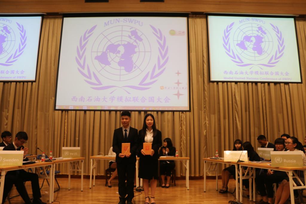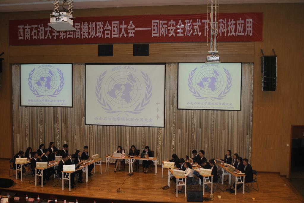2017年5月12日19:00,由外國(guó)語(yǔ)學(xué)院學(xué)生會(huì)外語(yǔ)沙龍、外語(yǔ)調(diào)頻廣播電臺(tái)、模擬聯(lián)合國(guó)協(xié)會(huì)聯(lián)合舉辦的西南石油大學(xué)第四屆模擬聯(lián)合國(guó)大會(huì),于圖書館報(bào)告廳圓滿舉行。