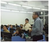 首先,鄭新民教授清晰地闡釋了語言學習的主要過程:感受語言——理解意思——模仿保持——活用語言、強調了語言內化與外化必須有機結合、分享了多樣新穎的英語學習方式,例如:“聯想記憶”、“諧音記憶”、“詞根詞綴記憶法”等等。最后,鄭新民教授組織大家對英語語言的方法和技巧、功能與前景展開了激烈的討論,同學們就自己目前對于英語語言學習的困惑提出了問題。