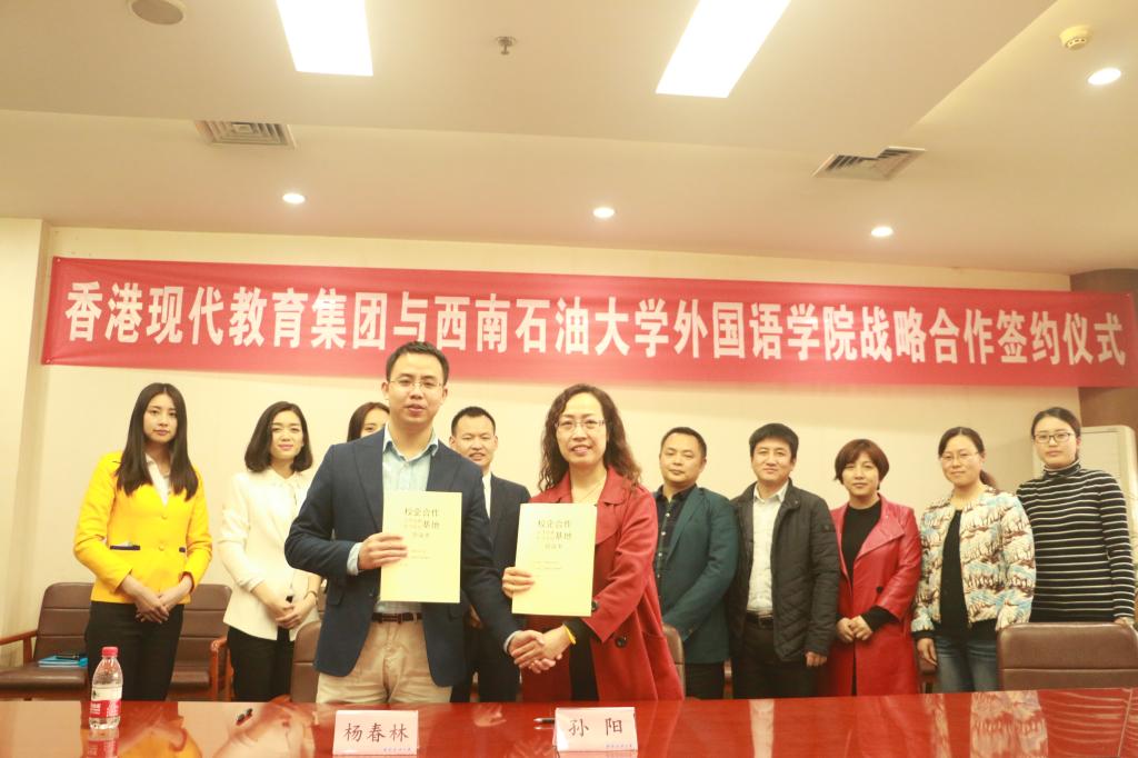 2017年3月29日下午三點,西南石油大學外國語學院與香港現代教育集團戰略合作簽約儀式在學校辦公樓209順利舉行。外國語學院院長孫陽,黨委書記方可,黨委副書記孫德剛,香港現代教育集團人力資源總監楊春林及學院和集團其他代表人出席了儀式。