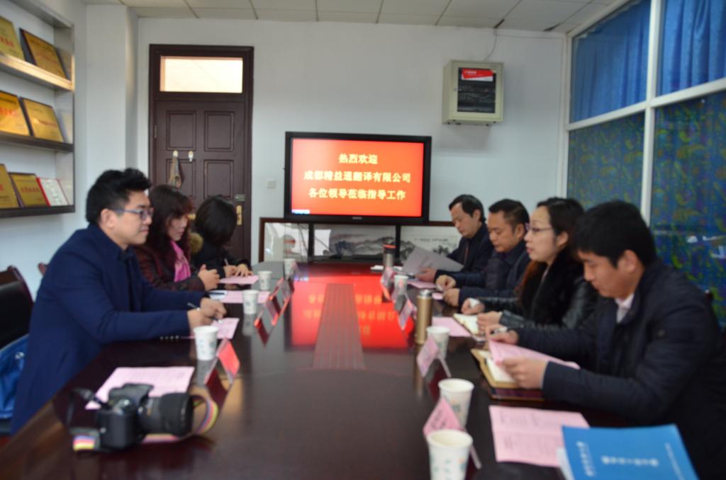 外國語學院與成都精益通翻譯有限公司校企戰略合作簽約儀式于2017年1月12日上午9點30分在思學樓AB406外國語學院會議室舉行。外國語學院孫陽院長,方可書記,孫德剛副書記,龍仕文副院長,精益通公司總經理馬帥,副總經理張林萍,市場總監章建民,人力資源部主管戴琴等校企領導參加。外國語學院方可書記主持儀式。