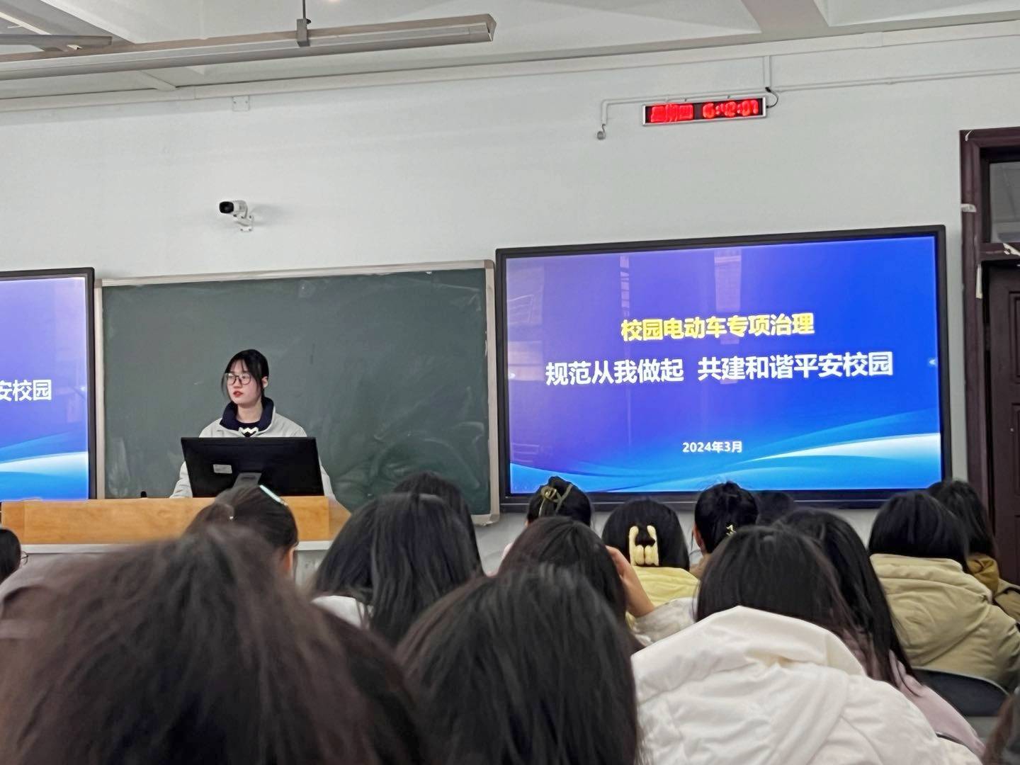 為貫徹落實學校電動車專項工作的相關部署,保障學生生命財產安全,維護校園交通秩序,創建和諧美麗的校園環境,3月6日至10日,我院面向全體學生開展校園電動車專項治理政策宣講主題班會。