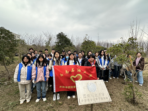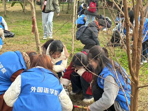 我院開展“志愿石大·樹新‘鋒’”學子感恩林維護活動