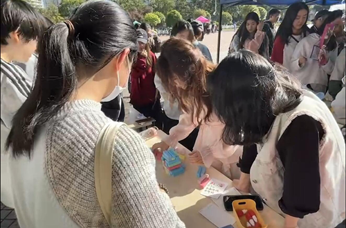 在三行情書優(yōu)秀作品鑒賞活動中,參與同學(xué)在展板處了解活動詳情并領(lǐng)取明信片,謄抄下喜歡的作品并寫下感悟。活動過程中同學(xué)們認(rèn)真品鑒作品,細(xì)細(xì)感悟其中美好情感,在“樂觀向陽”的三行情書作品中收獲新一年“堅韌”的向前動力。在“我傾訴,我解決”互助活動中,有的同學(xué)是傾訴者,在展墻上寫下遇到的阻礙或者煩惱,亦或是難以堅持的目標(biāo);有的同學(xué)是解決者,在展墻上寫下自己的訣竅妙招,為傾訴的同學(xué)排憂解難。活動過程中同學(xué)們盡情書寫,表達(dá)想法,互幫互助,熱情高漲,在學(xué)會傾訴與互助中不斷提高自己勇往直前的信心。在巧運(yùn)乒乓小游戲中,參與同學(xué)在一分鐘內(nèi)用嘴吹送水杯上的乒乓球,期間不能使用其他身體部位,活動過程中時有“意外”發(fā)生,但這依舊沒有撲滅大家挑戰(zhàn)的熱情,鍛煉了同學(xué)們的耐心與毅力。在“新氣象,節(jié)節(jié)高”壘積木小游戲中,參與同學(xué)在一分鐘內(nèi)使用積木完成壘積任務(wù)。活動過程中,同學(xué)們有的保證平穩(wěn),慢慢壘積;有的追求高分,挑戰(zhàn)自我,無論是十二層保底還是十六層的挑戰(zhàn),都是對大家平衡力與毅力的考驗。四個項目體驗完畢,同學(xué)們根據(jù)明信片積分前往獎品臺兌換獎品。展桌前熱鬧無比,同學(xué)們也對獎品愛不釋手。