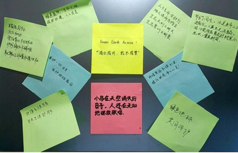活動過程中,各班通過觀影、分享環(huán)保經(jīng)歷、互動問答、題寫標語等多種形式,向學生普及了環(huán)保知識,強調了生態(tài)文明建設的重要性。同學們積極參與,氣氛活躍,對于當前存在的環(huán)境問題頗有感觸,并積極為建設美麗中國建言獻策。同學們紛紛表示將積極踐行環(huán)保理念,從創(chuàng)建綠色校園做起,以身作則,提高生態(tài)文明素養(yǎng),用扎實的行動譜寫創(chuàng)建綠色校園的篇章,為建設美麗中國貢獻自己的青春力量。