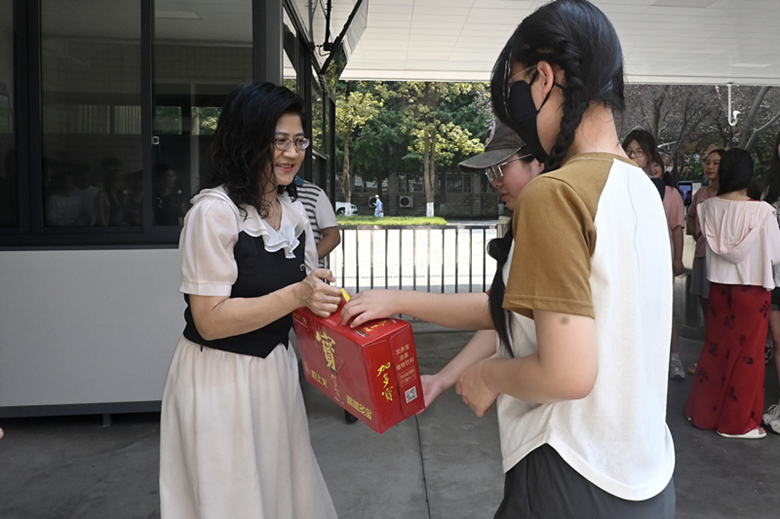 隨后,老師們一行移步至銀杏雅苑學生社區,將一份份滿載關懷的清涼禮包親手遞到了寢室同學們的手中。黨委書記姚明淑表示,學院始終將學生的合理需求放在首位,會盡最大努力幫助大家克服酷暑帶來的不便,攜手共度這段炎熱的時光。