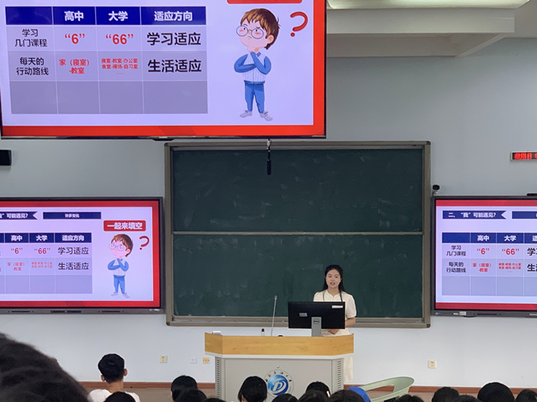 為幫助新生更好地適應大學的生活與學習,加快從高中生到大學生的角色轉變,9月8日上午,我院于思學樓C210教室開展了2024級新生適應性教育主題講座。本次講座由輔導員詹蕓主講,輔導員李飛主持。全體2024級新生參與了講座。