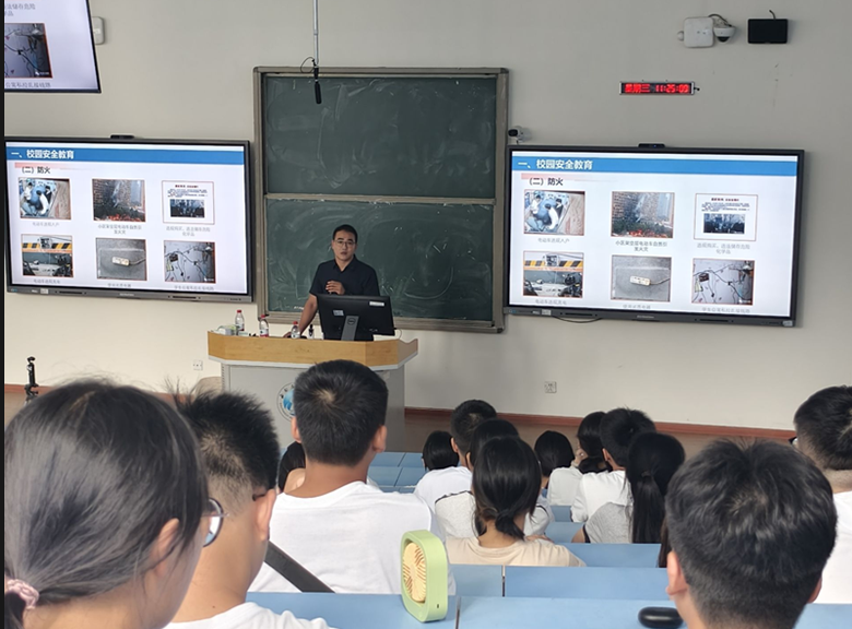 9月11日上午,我院在思學樓B110開展新生安全法紀教育專題講座,學校黨委保衛部葛效鵬老師擔任主講人。全體2024級新生參加了本次講座。