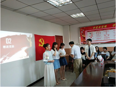 蘭力平書(shū)記向預(yù)備黨員贈(zèng)送黨徽
