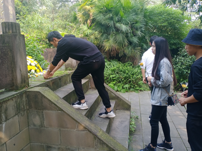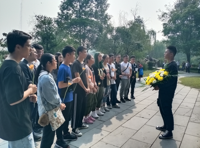 9月25日,校學生會、西柚紅色印象協會在學生一食堂舉行先烈事跡學習和“把握當下不負青春”師生簽名活動,在留言簽名板上,同學們紛紛表示,烈士雖離我們而去,但他們的精神永存,我們要永遠學習。9月26日,學生社團聯合會組織學生社團代表觀看愛國主義紀錄片,了解抗日戰爭川軍事跡。當聽到“男兒立志出夔關,不滅倭奴誓不還,埋骨何須桑梓地,人生處處有青山”的《告川康軍民書》時,當看到300萬川軍出川抗戰,64萬多人傷亡,參戰人數之多、犧牲之慘烈居全國之冠的數字時,大家心潮澎湃,久久不能平息。9月27日,校學生會、校社團聯組織學生代表前往新都區桂湖公園,舉行向臺兒莊大捷,死守滕縣英勇獻身的新都抗日名將王銘章將軍敬獻花籃和掃墓活動,來自山東滕縣的一名同學主動擔當講解志愿者。在紀念儀式上,志愿者同學將老一輩們口口相傳的王銘章將軍事跡向大家講述,同學們仔細聆聽,深深向英烈鞠躬敬獻花籃、為烈士掃墓。除此活動外,校團委還選取典型文章、優秀事跡,通過“兩微一端”,在校內外宣傳烈士英勇事跡。(文/楊梓因 圖/翟雪桐 曾疏影)
