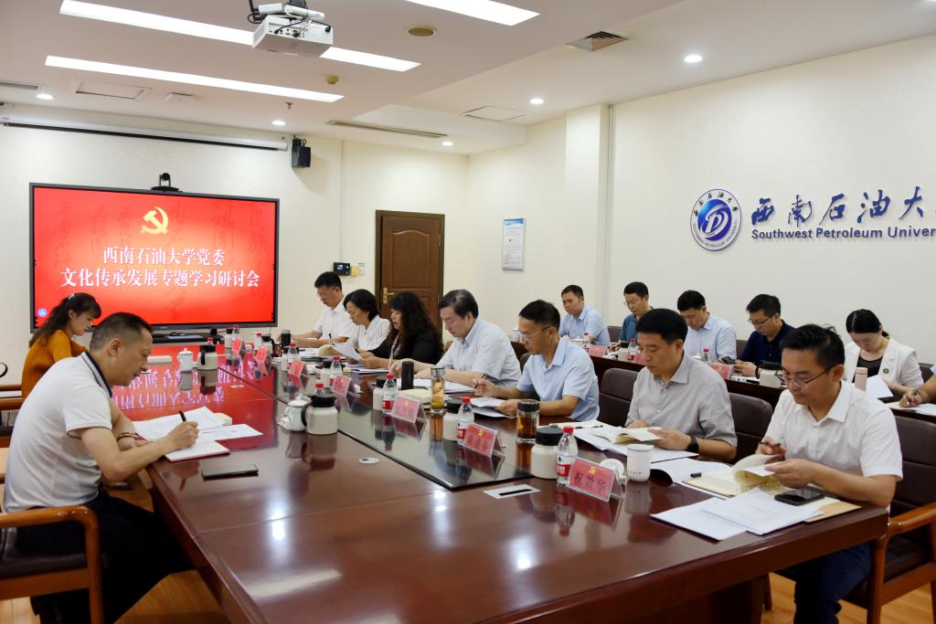 會議強調(diào),一要深學(xué)細悟篤行習(xí)近平總書記關(guān)于文化傳承發(fā)展的重要講話精神,切實將思想和行動統(tǒng)一到黨中央決策部署上來,把學(xué)習(xí)宣傳貫徹習(xí)近平總書記關(guān)于文化傳承發(fā)展的重要講話精神作為重要政治任務(wù),精心謀劃、及時部署,迅速興起學(xué)習(xí)宣傳貫徹?zé)岢薄6訌娧芯筷U釋,圍繞文化傳承發(fā)展產(chǎn)出一批高質(zhì)量學(xué)術(shù)成果,謀劃設(shè)立研究闡釋文化傳承發(fā)展專項課題,圍繞習(xí)近平總書記提出的重大理論觀點和重大決策部署持續(xù)深化研究闡釋,著力推動學(xué)校哲學(xué)社會科學(xué)研究人員產(chǎn)出一批有理論說服力、有實踐指導(dǎo)意義的學(xué)術(shù)成果。三要堅定文化自信,大力弘揚“三有三必”的奮斗精神,持續(xù)發(fā)展轉(zhuǎn)化“有條件要上,沒有條件創(chuàng)造條件也要上”的鐵人精神,傳承創(chuàng)新以“三老四嚴”、艱苦奮斗等為主要內(nèi)容的石油行業(yè)優(yōu)良傳統(tǒng),持續(xù)挖掘石大校史、石大文脈,繼續(xù)厚植“加油爭氣”校園文化底蘊,深刻烙印“三有三必”的拼搏奮斗精神,引導(dǎo)師生不斷增強干事創(chuàng)業(yè)、改革發(fā)展的思想自覺和行動自覺。四要加強文化交流互鑒,提升文化傳播能力,堅守中華文化立場,提煉展示石大文明的精神標識和文化精髓,加快構(gòu)建石大話語和行業(yè)敘事體系,努力講好石大故事、傳播石大聲音、展現(xiàn)石大形象,全面提升傳播效能,在國際上、行業(yè)上形成一定的西南石大話語權(quán),持續(xù)深化文明交流互鑒,推動石大文化更好走向世界。