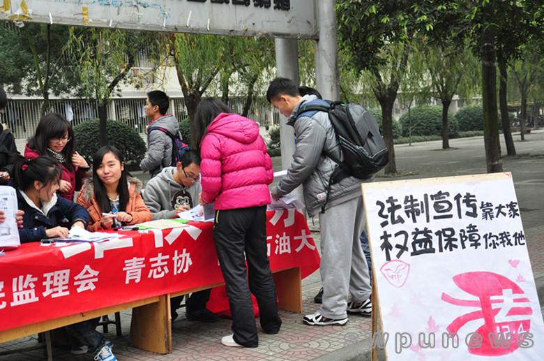 12月4日是全國第12個法制宣傳日,我校法律援助站、法律協會召集一批優秀大學生志愿者在校內外開展了法制宣傳活動。