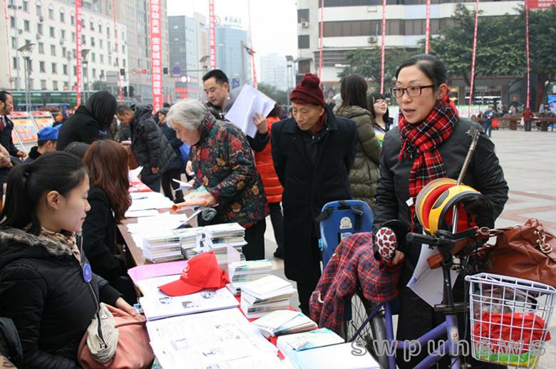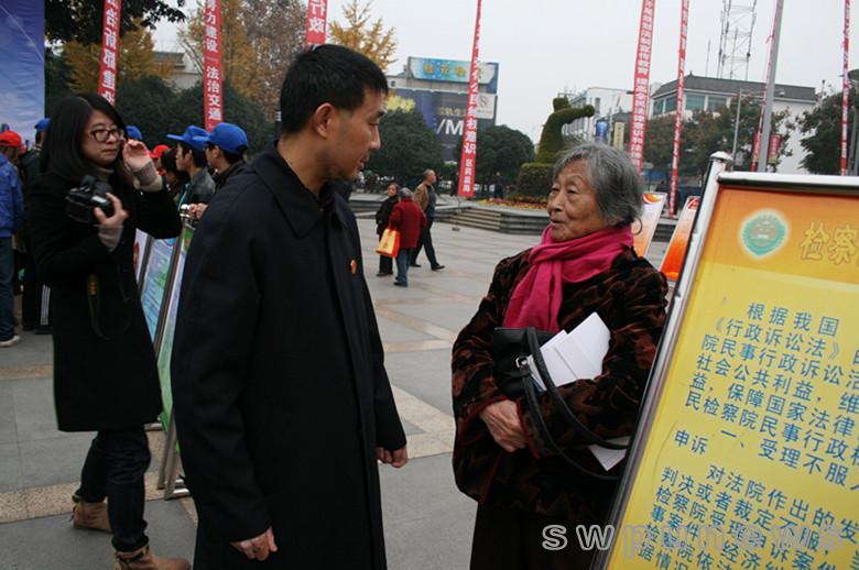 在新都區黃桷樹廣場,同學們加入到中共成都市新都區委員會和新都區人民政府主辦,區委宣傳部法制建設領導小組辦公室和區司法局承辦的宣傳活動。這次活動以“弘揚憲法精神,服務科學發展,全面推進法制新都進程”為主題,志愿者們積極散發宣傳單、法制日歷和宣傳環保袋,向市民宣傳《法律援助申請指南》、《法律援助告知書》、《法律常識》、《憲法知識》,并為前來咨詢的群眾答疑解惑。新都區人民檢察院、區婦聯、區公安局等機關單位也參加了活動。