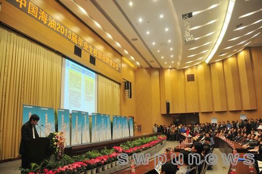 14日晚,中海油在圖書館學術報告廳進行了招聘宣講會。中海油通過一個視頻來向現(xiàn)場的畢業(yè)生介紹了中海油的發(fā)展歷程、規(guī)模、環(huán)境和前景。