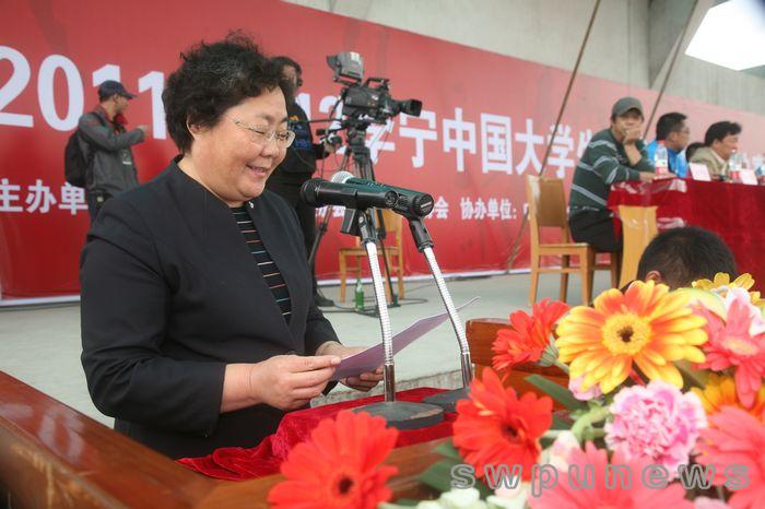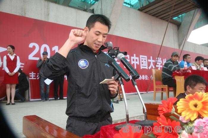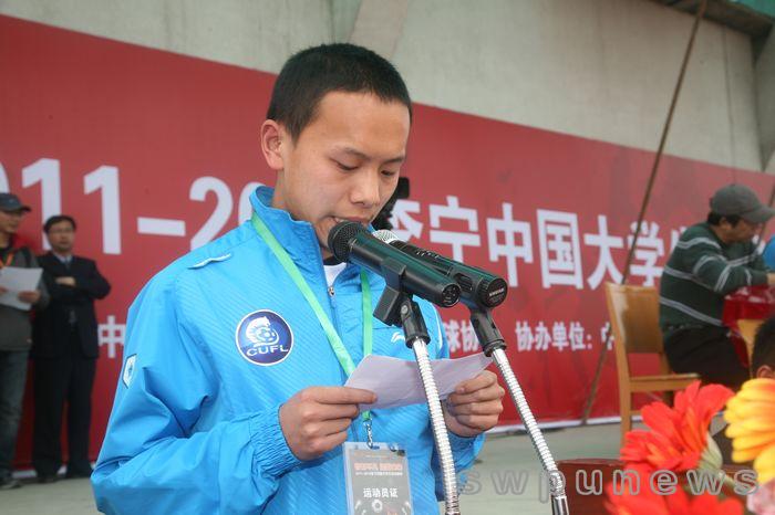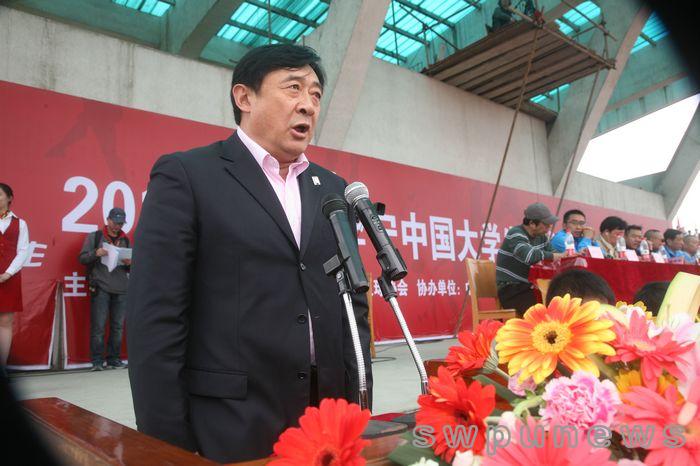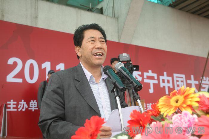 中國大學生體育協會專職副主席王剛宣布2011-2012李寧中國大學生足球聯賽南區決賽開幕。