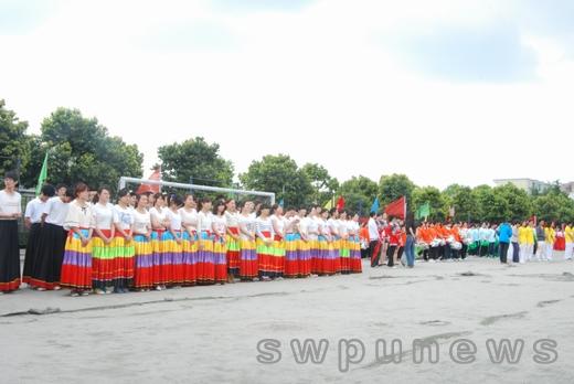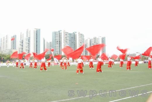 火紅的衣衫火紅的旗,火紅的激情火紅的心,在4月17日的大足賽南區開幕式上,所有人都在驚嘆著凜冽的大風中,西南石油大學志愿者們的表演,“每一次舉手投足,每一次大開大合都足見志愿者們在排練時的用心。”觀看開幕式表演的中國大學生體育協會專職副主席王剛驚嘆道。