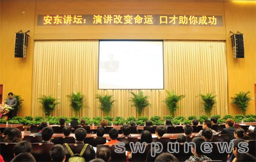 4月19日晚,安東講壇第九講“演講改變命運 口才助你成功”在我校圖書館學術報告廳里舉行。