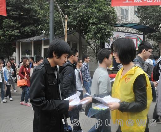 安全與健康協(xié)會(huì)的會(huì)員向同學(xué)們發(fā)放宣傳資料