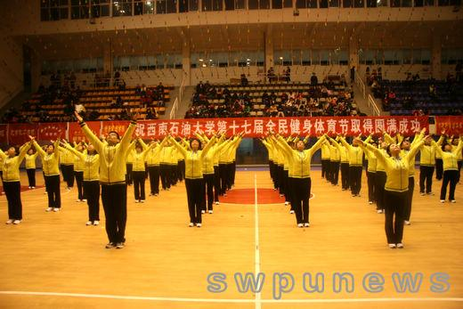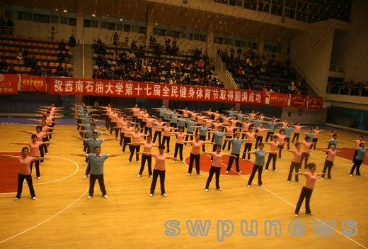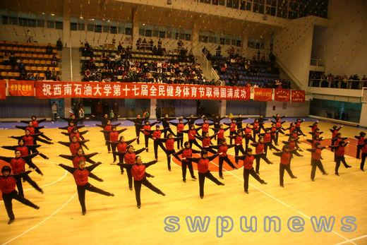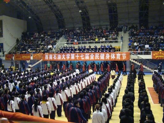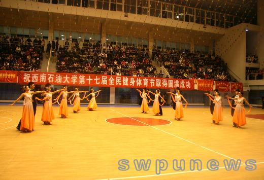 12月16日晚,西南石油大學第十七屆全民健身體育節在成都校區體育館舉行。本屆體育節的主題是“每天鍛煉一小時,健康工作50年”。