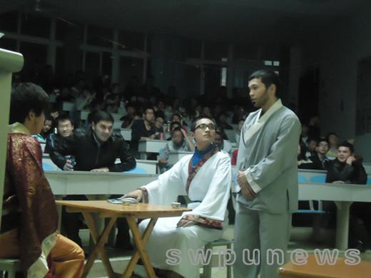 留學生們很受我校師生的喜愛,他們經常被邀請參加一些活動,如藝術學院主辦的“校園風”第一季“音樂集結號”活動和文法院主辦的“宣傳那些事兒”活動等。在“宣傳那些事兒”活動中,來自哈薩克斯坦的阿魯馬斯參演了外語院的情景劇。劇中,他從現代中亞穿越到三國時期,成了諸葛亮的侍從,他用手機為諸葛亮準確地預測了天氣,幫助諸葛亮成功實現草船借箭。其幽默生動的表演給觀眾們留下了深刻的印象。