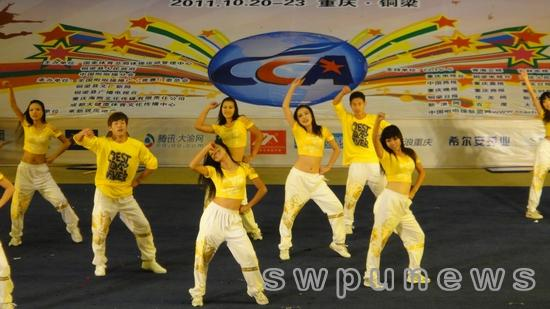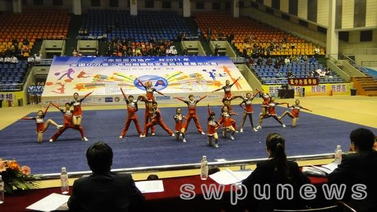 我校有18名來自不同院系的同學出征本次大賽。大賽中,我校運動員富有活力、整齊劃一的動作和動感表現受到評委的肯定。