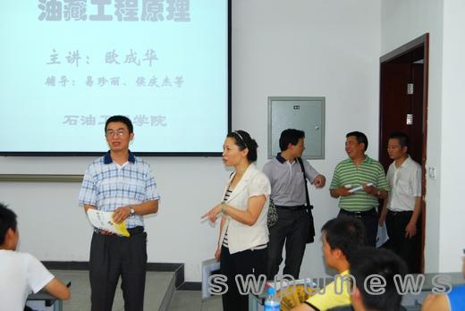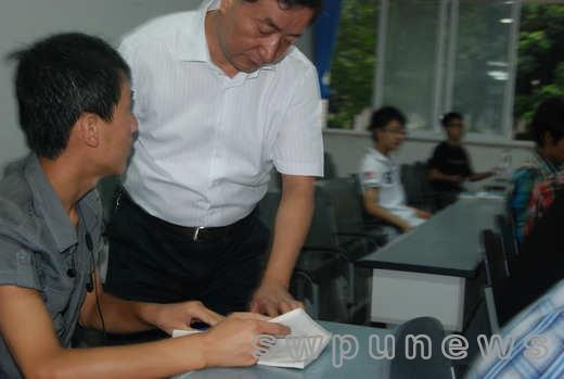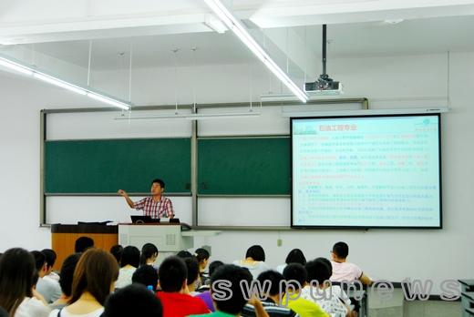 2010級地理信息系統專業開學的第一課是《大學物理》,7點50分,教室的位置就坐滿了,張文衛走進教室與同學們親切交談起來。“上課熱不熱?” “熱。”“同學們克服一下,天氣預報說過幾天就要降溫了。”“謝謝領導關心。”