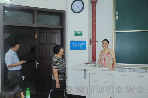 在博學樓,孫一平對照課表,對教師到課、學生到課、課堂教學秩序、教材使用、教學設施運行和教學環境衛生等情況對進行了全面檢查和了解。