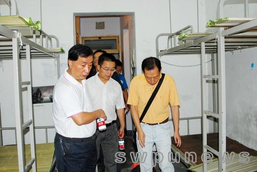 9月7日,是新生正式報到前一天,黨委副書記孫一平率黨辦校辦、宣傳部、學工部、保衛(wèi)處、教務處、國資處、設備處、后勤服務總公司、校醫(yī)院等單位負責人對新生接待點、校醫(yī)院、體育館、學生食堂和學生宿舍進行了安全大檢查。