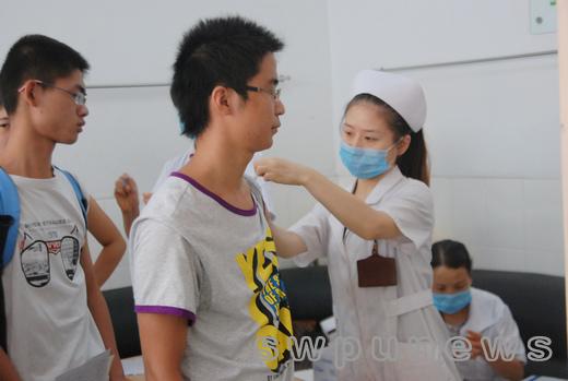為保證迎新工作的順利進行,學校提前就做好了充分準備,有所報到程序都有條不紊,體檢、繳費、注冊、辦理一卡通、領取軍訓服裝都忙而不亂。在保衛處的周到安排和工作人員的指揮下,校園交通井然有序。
