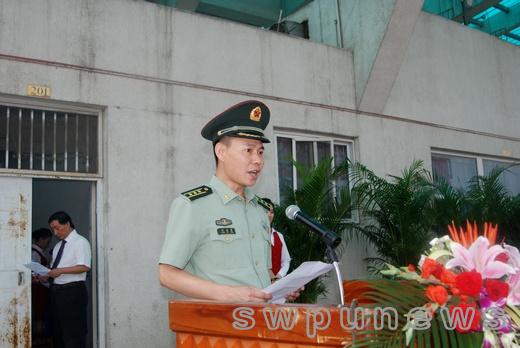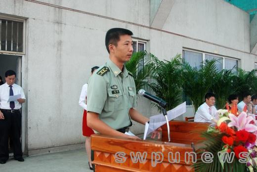 楊濤代表承訓部隊講了話。他指出,軍訓是大學生接觸軍隊生活,了解國防知識的課堂,更是一個挑戰自我,提升自我的過程。希望全體新生珍惜軍訓機會,不怕苦,不怕累,進一步增強團結意識和紀律意識,努力克服困難,圓滿完成軍訓任務。
