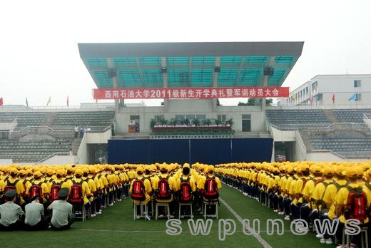 9月16日上午,學校在成都校區田徑運動場舉行2011級新生開學典禮暨軍訓動員大會。全體校領導,新都區人民武裝部部長方志勇,成都軍區某部副團長、軍訓團副政委、副團長楊濤,軍訓團團長、學校武裝部部長郭敏,軍訓團政委、學工部部長邱子輝,學校黨辦校辦、校團委、教務處及各學院負責人參加了大會。校長杜志敏講了話,大會由校黨委副書記孫一平主持。