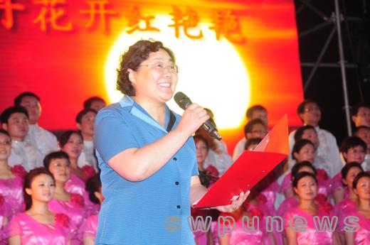 機關代表隊的教職工們合唱了一首陜北民歌《山丹丹開花紅艷艷》,校長杜志敏親自上陣朗誦詩詞贏得了大家的掌聲,領唱文雪精湛的演唱以及整個機關教職工的默契配合得到了評委的認可,獲得了全場的最高分。