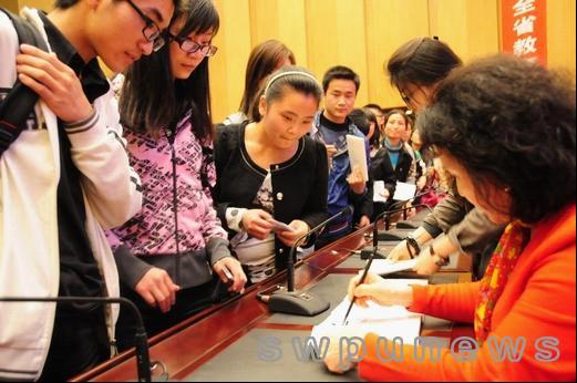 講座結束后,經管院09級的蘇靜同學還在學術報告廳徘徊,不愿離去?!昂芫脹]有聽過這樣精彩的講座了,以前在面對許多選擇時,我總是很猶豫。今天聽完這個講座后,我明白,既然做出了選擇,就一定要堅持下去,我要為我的未來負責?!?/span>