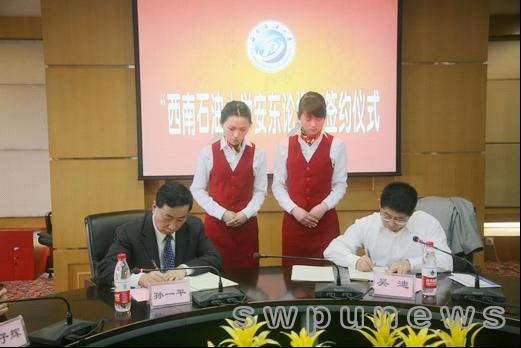 為讓大師走進西南石油大學,推進學生通識教育,傳播優秀文化和先進科技成果,培養學生的創新精神,吸引優秀人才服務企業,安東石油技術(集團)公司與我校共同設立“西南石油大學-安東論壇”。昨日,黨委副書記孫一平、安東油田服務集團執行董事吳迪為此簽訂了“西南石油大學-安東論壇”協議。