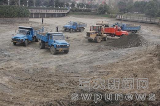 “轟轟轟……” 這幾日,記者發現在創業路兩側夢溪河的河床里,兩臺挖泥機正在緊張地施工,推土機則把河底的沙石堆夷為平地,運土車穿梭在創業大道上,運走河底的污泥……整個工地呈現出一派熱火朝天的景象。