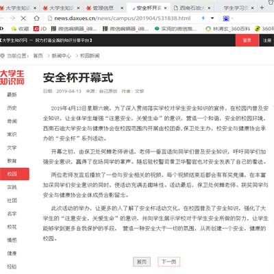 “大學生知識網”報道我校安全杯開幕活動