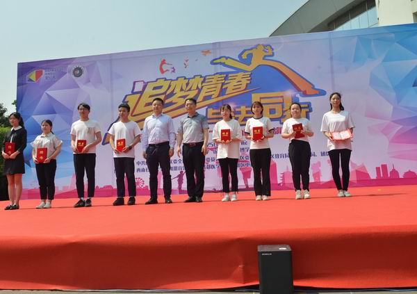 儀式上,與會領導為8名市、區兩級“高校法治宣傳代言人”頒發了聘書。4名“高校法治宣傳代言人”代表向全體同學發出“爭做新時代守法好青年”的倡議。我校法學院學生表演了快閃舞蹈。