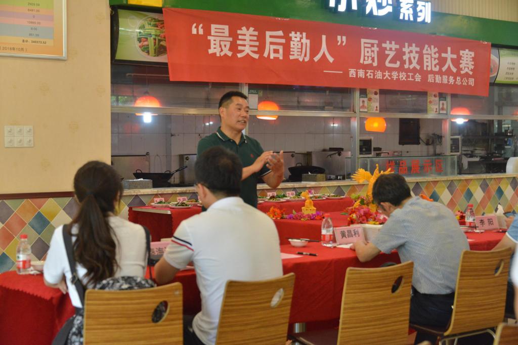 四川旅游學(xué)院工會(huì)常務(wù)副主席包奕燕、校工會(huì)副主席黃昌利、后勤紀(jì)委書記余輝、學(xué)生工作部(處)研究生工作辦公室主任秦海洋、宣傳部新聞中心副主任李陽(yáng)、社團(tuán)聯(lián)飲食文化協(xié)會(huì)會(huì)長(zhǎng)李天藝、電信院學(xué)生會(huì)主席秦昊宇擔(dān)任本次比賽評(píng)委,后勤黨委書記趙永清出席活動(dòng),后勤餐飲中心副主任竇雪鋒主持比賽。