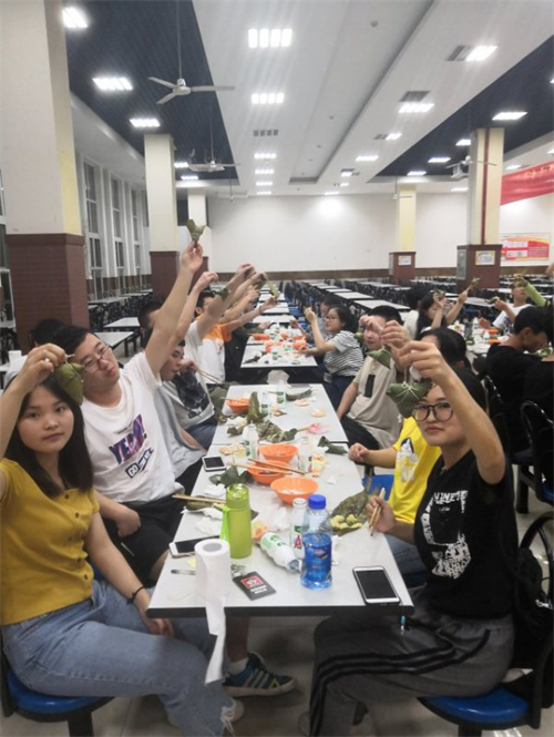 活動伊始,二食堂的工作人員給同學們講解了做粽子的操作流程,教導同學們一些制作小技巧及注意事項。同學們迫不及待地將已經準備好的糯米、蜜餞、油鹽醬醋等原材料進行了分配,對各項工作進行了分工,快速地進入工作狀態。大家還準備包餃子的原材料,開展包餃子活動,活動現場精彩紛呈、熱鬧非凡。
