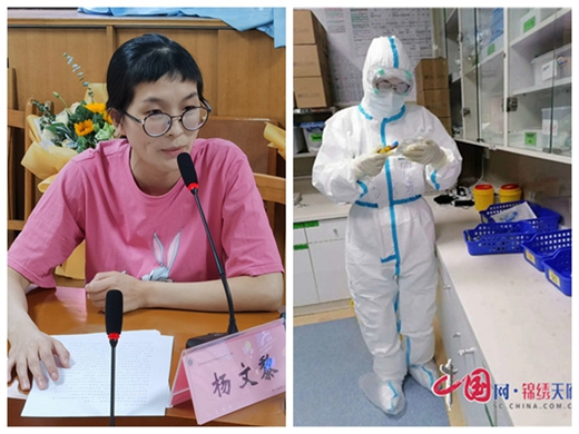 援鄂醫(yī)療隊(duì)隊(duì)員、聯(lián)絡(luò)員楊文黎講述了自己在醫(yī)療救治工作的親身經(jīng)歷和感受,分享了許多抗疫中的小故事。她第一時(shí)間遞交了請戰(zhàn)書,丟下年幼的小孩加入抗疫隊(duì)伍,立即感覺自己成為了一名“戰(zhàn)士”,尤其看到 “武漢加油”“中國加油”的標(biāo)語,心中的責(zé)任感使命感更加強(qiáng)烈。她說,這次參加抗疫,深深感受到英雄的真正含義,英雄就是一個(gè)個(gè)平凡人在祖國和人民需要時(shí)挺身而出。
