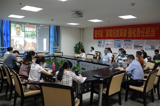 5月19日下午,圖書館直屬黨支部聯(lián)合四川省第二中醫(yī)醫(yī)院黨委,通過網(wǎng)絡(luò)連線方式,與抗疫英雄舉行了一次特殊的交流活動(dòng)。活動(dòng)由圖書館直屬黨支部書記楊春麗和省第二中醫(yī)醫(yī)院黨委委員、黨辦主任袁曉香共同主持。醫(yī)院援助湖北醫(yī)療隊(duì)部分隊(duì)員、醫(yī)院院感辦負(fù)責(zé)人等參與分享,圖書館全體黨員和職工通過線上和線下方式參加。